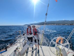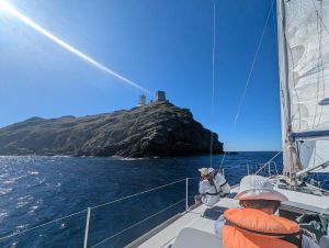 Le lendemain, tous les élèves embarquent sur des bateaux, quelques uns en habitables (pour les régates officielles qui les a emmené autour de l’île de la Giraglia), d’autres sur les bateaux comité et de sécurité, tout en continuant à naviguer sur le bateau adapté de Mare Inseme.