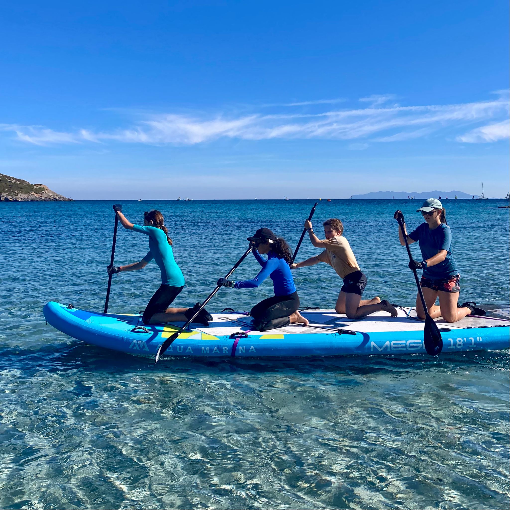 Le lendemain matin, raid multi-support, voile sur bateau collectif (RS Quest), laser run sur la plage et paddle géant…